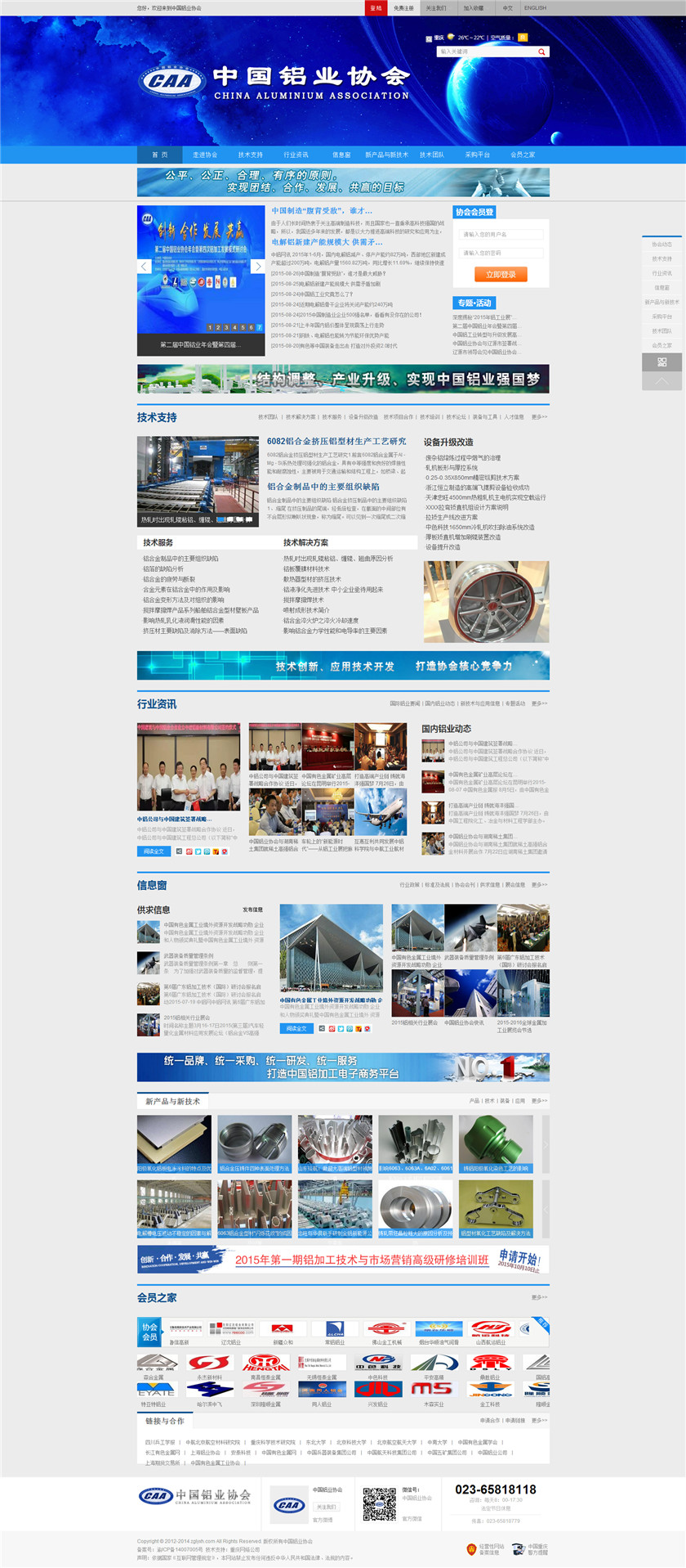Project Description 中国铝业协会是由中国国内主要从事铝合金铸造、板、带、箔、管、棒、型材、锻件等企业组成的行业协会组织,协会由国内具有一定规模和影响力的企业发起,已有三百多家会员企业,目前还有很多企业踊跃希望加入,协会现有会员企业年销售额1000多亿元人民币,协会会员企业分布在国内华东、华南、西南、环渤海、东北、胶东半岛等中国经济活跃地区;产品涵盖航空航天、兵器装... Official website address 普陀http://www.caa2014.com I want to share